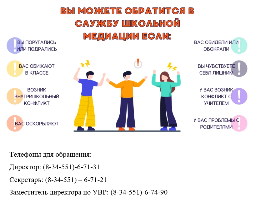 Служба школьной медиации (примирения) готова работать со всеми участниками образовательного учреждения и организовать медиацию между:
